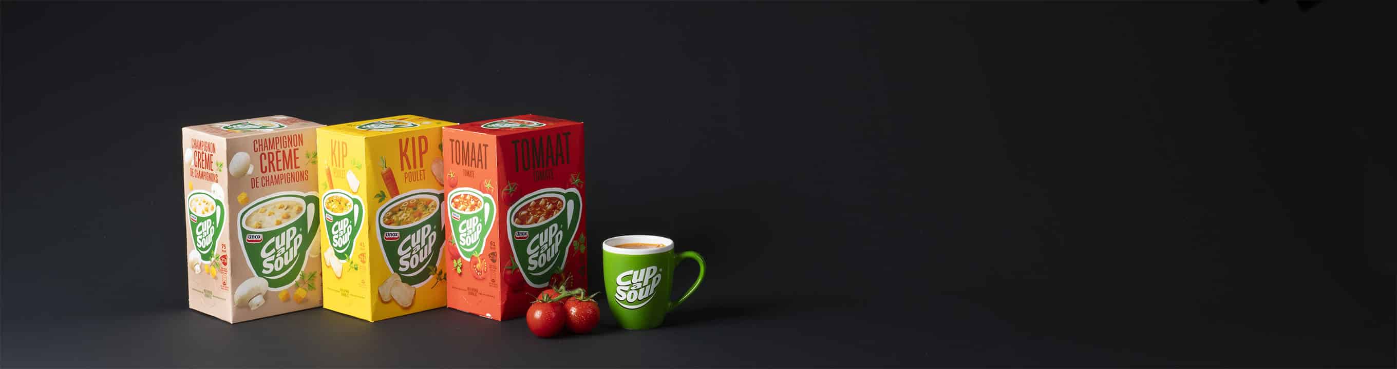 Trakteer jezelf, collega’s en medewerkers op een lekker kopje soep. Goede smaak kan alleen slagen met de beste ingrediënten. Daarom is Cup-a-Soup nu zonder toegevoegde smaakversterkers, kunstmatige kleurstoffen en conserveermiddelen. Elke Cup-a-Soup bevat groenten en kruiden die zijn geteeld met zorg en onmiddellijk voorzichtig zijn gedroogd na de oogst om daarvan de lekkerste ingrediënten te produceren.